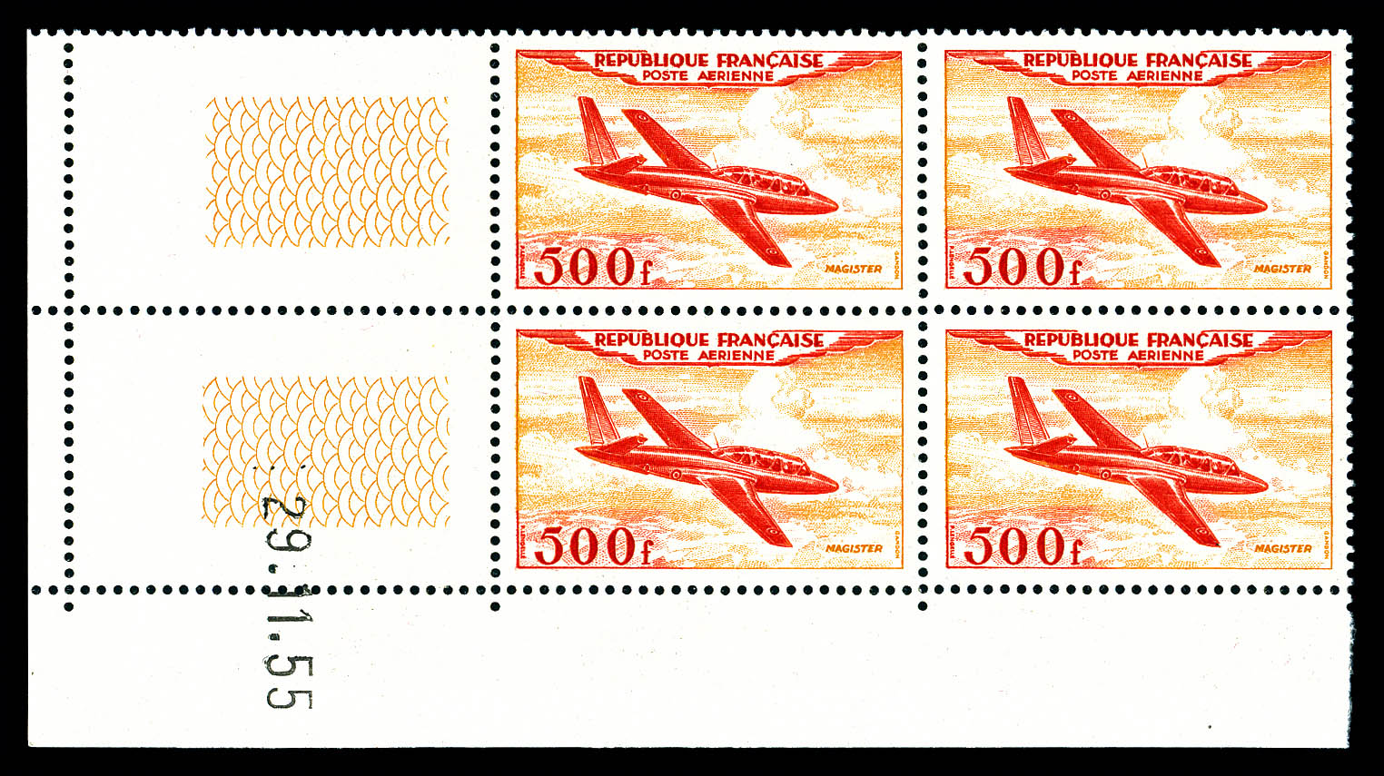 2065 nh imageN°32, 500F Magister, bloc de quatre cdf daté du 29.11.55. TTB Qualité: ** Cote: 1300 euros (Image)