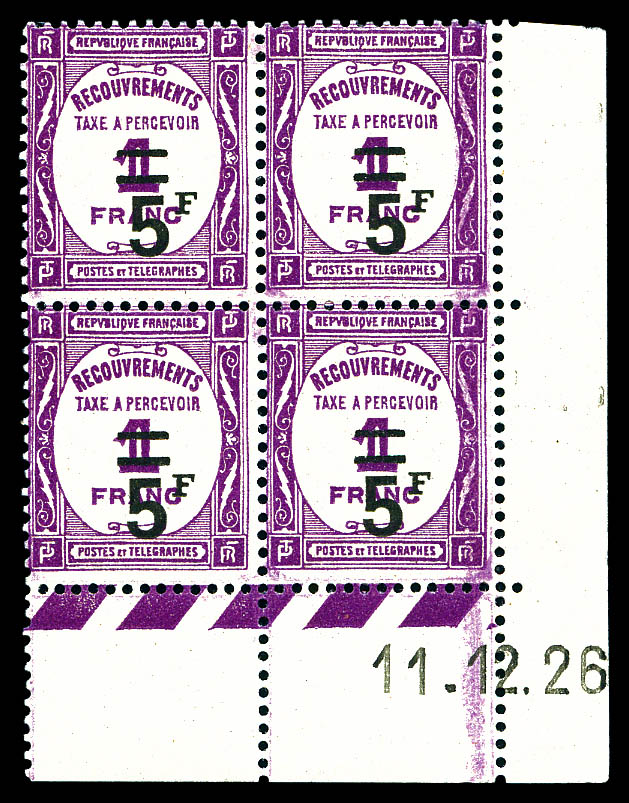 2067 nh imageN°65, 5f sur 1f lilas en bloc de quatre cdf daté du 11.12.26. TB Qualité: ** Cote: 1000 euros (Image)