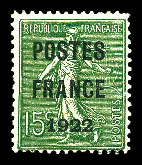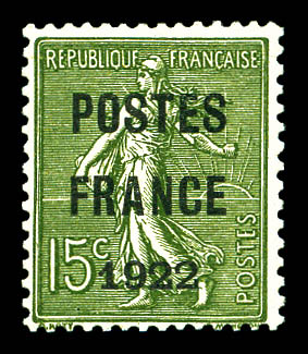 N°37, 15c olive surchargé 'POSTE FRANCE 1922', très frais. SUP (signé Brun/certificat) Qualité: * Cote: 1400 euros (Image) (imagea)