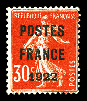 N°38, 30c rouge surchargé 'POSTE FRANCE 1922'. TTB (certificat) Qualité: (*) Cote: 950 euros (Image)