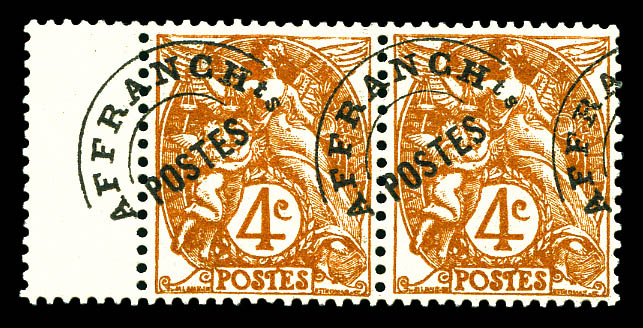 N°40h, 4c brun: surcharge à cheval sur paire bdf. SUP (certificat) Qualité: ** (Image)