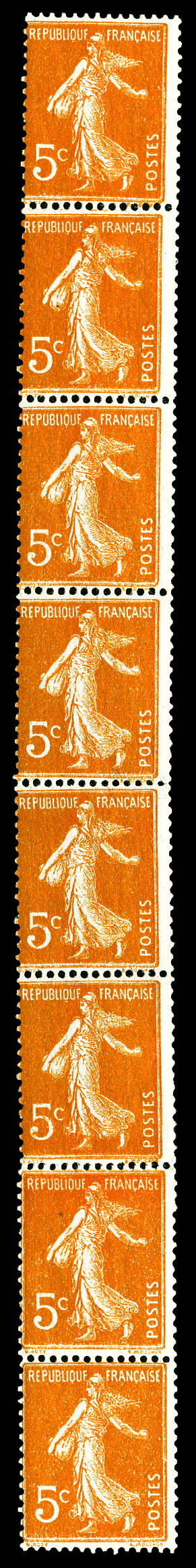2122 nh imageN°5, 5c Semeuse, bande de 8 verticale. TB Qualité: ** Cote: 406 euros (Image)