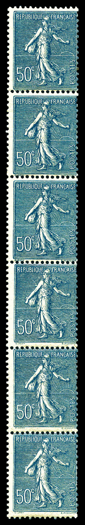 2123 nh imageN°7, 50c Semeuse lignée, bande verticale de six N°161. TTB Qualité: ** Cote: 525 euros (Image)