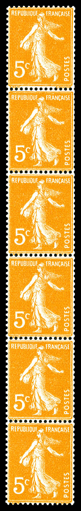 2124 nh imageN°8, 5c Semeuse orange, bande de six verticale (N°158c). TTB Qualité: ** Cote: 185 euros (Image)