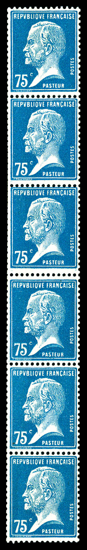 2126 nh imageN°15, 75c Pasteur, bande de 6 verticale. SUP. R.R (certificat) Qualité: ** Cote: 2500 euros (Image)