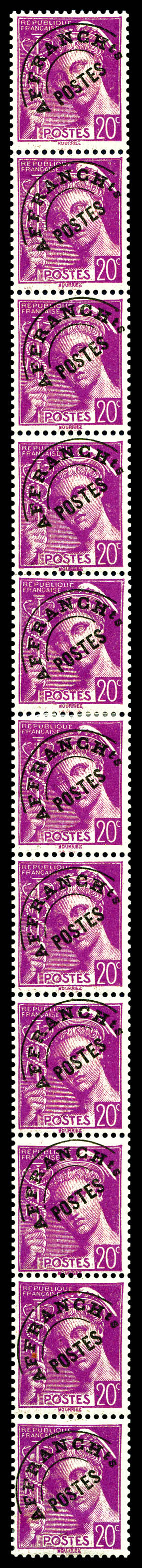 2129 og imageN°49, Préoblitéré, 20c Mercure, bande verticale de 11 exemplaires. TB. R. (signé/certificat) Qualité: * Cote: 1500 euros (Image)