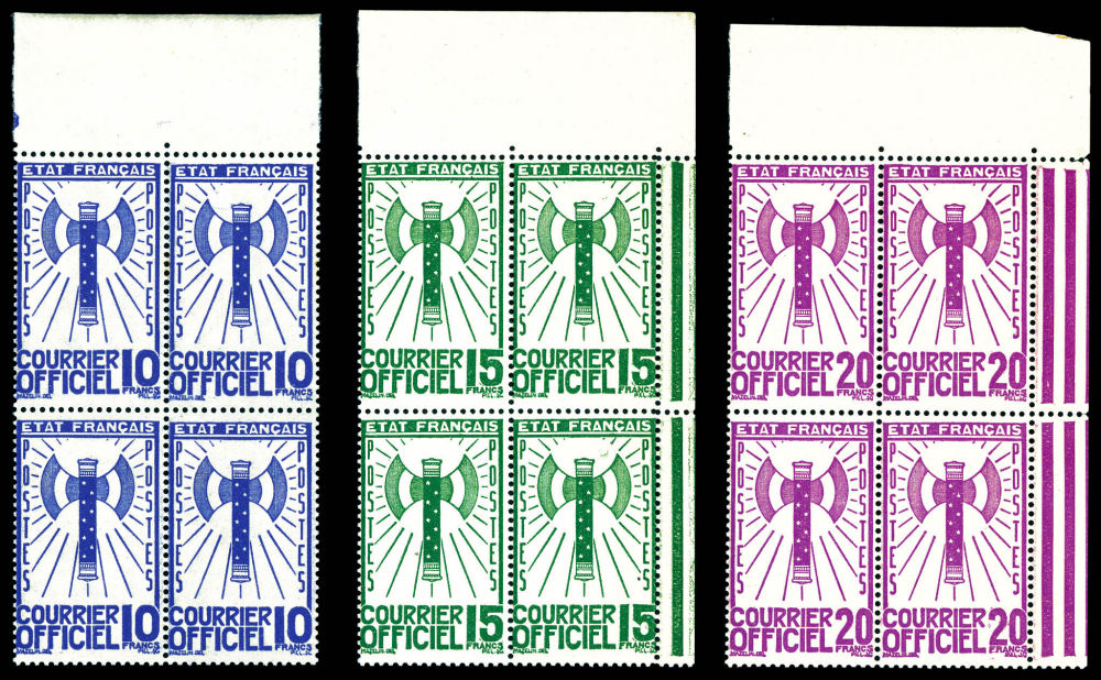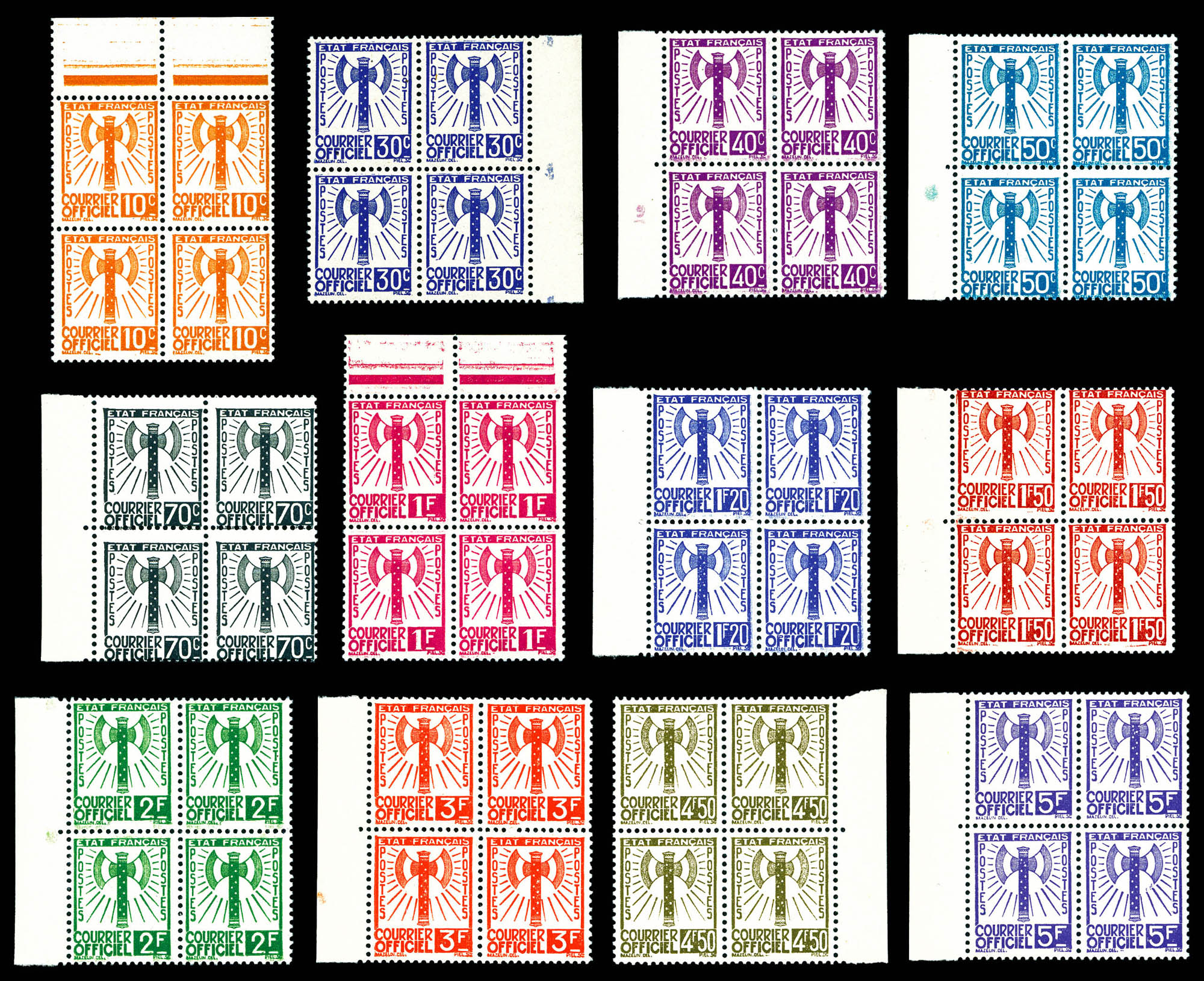 2132 nh imageN°1/15, Série Francisque de 1943, les 15 valeurs en BLOCS DE QUATRE BORDS DE FEUILLES, R.R.R. SUPERBE (certificat) Qualité: ** Cote: 15000 euros (Image) (imagea) (All Images)