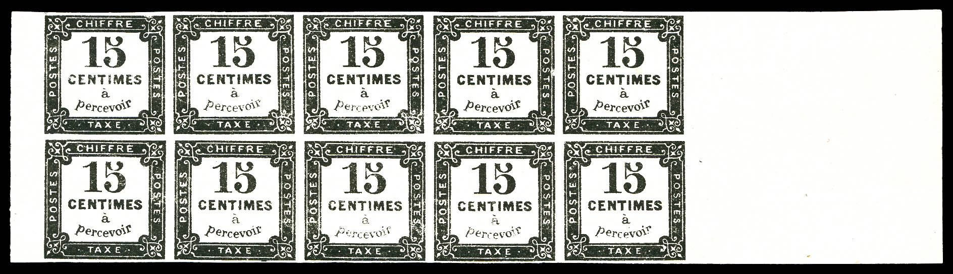 2135 ng imageN°1, Taxe carré, 10c noir essai 22x22 mm. SUP (certificat) Qualité: (*) Cote: 750 euros (Image)