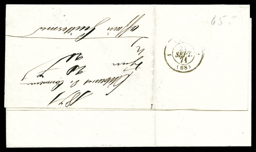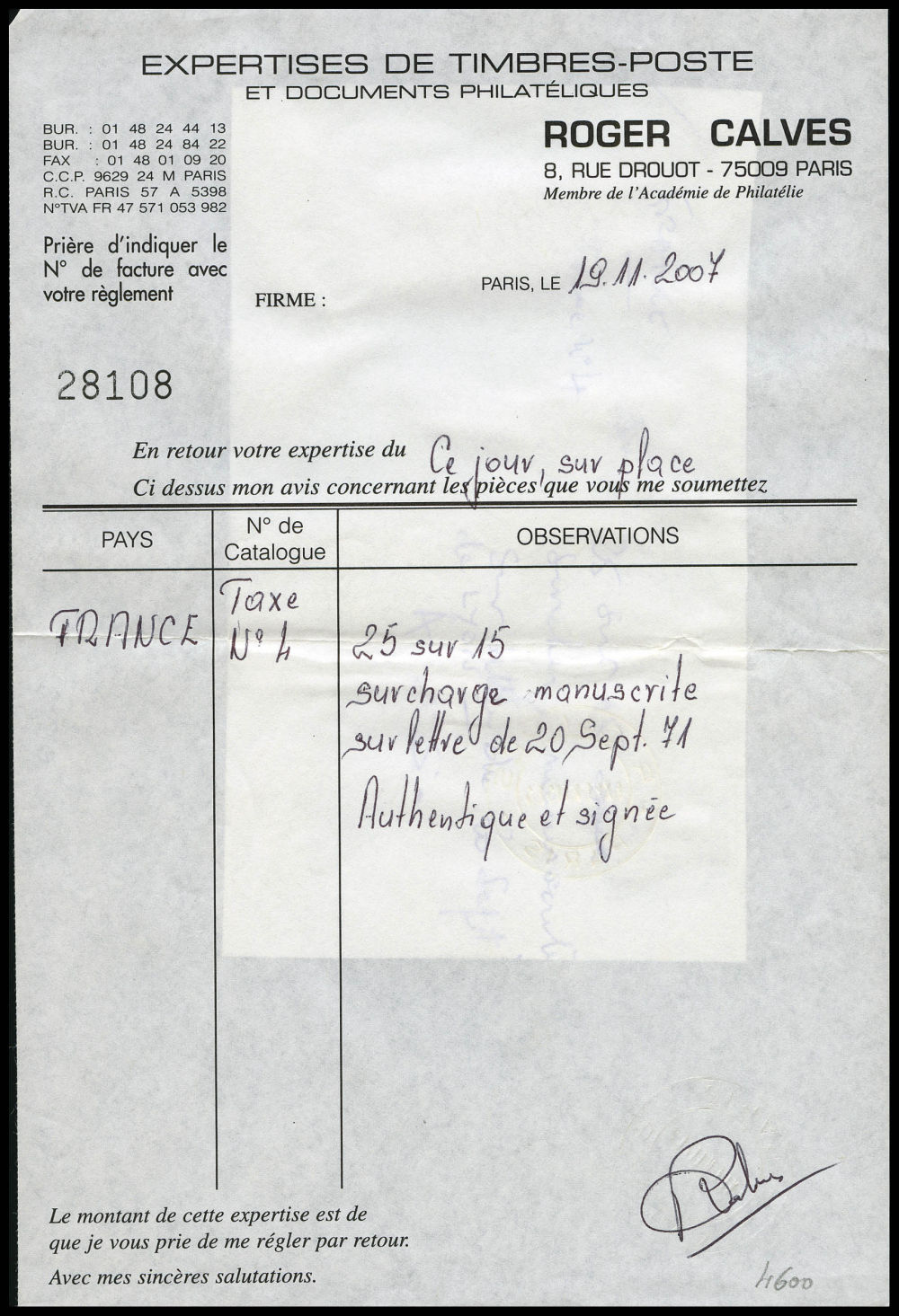 2137 imageN°4A, 25c surcharge manuscrite sur 15c noir (suite au changement de tarif du 1er septembre 1871) obl càd du 20 septembre 1871 sur lettre locale de LYON. SUPERBE. R.R. (signé Calves/certificats) Qualité: Oblitéré Cote: 4600 euros (Image) (imagea) (imageb) (All Images)