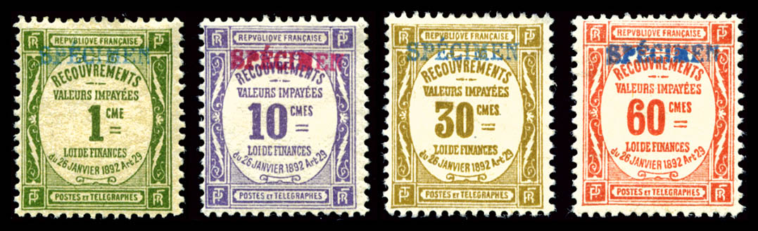 2165 og imageSérie Recouvrement: les 4 valeurs surchargées 'SPECIMEN' en rouge et bleu, R.R.R. (signés Scheller/certificat) Qualité: * (Image)