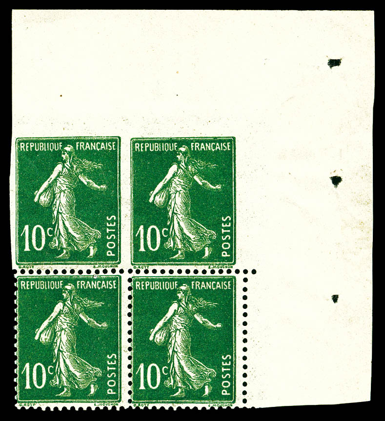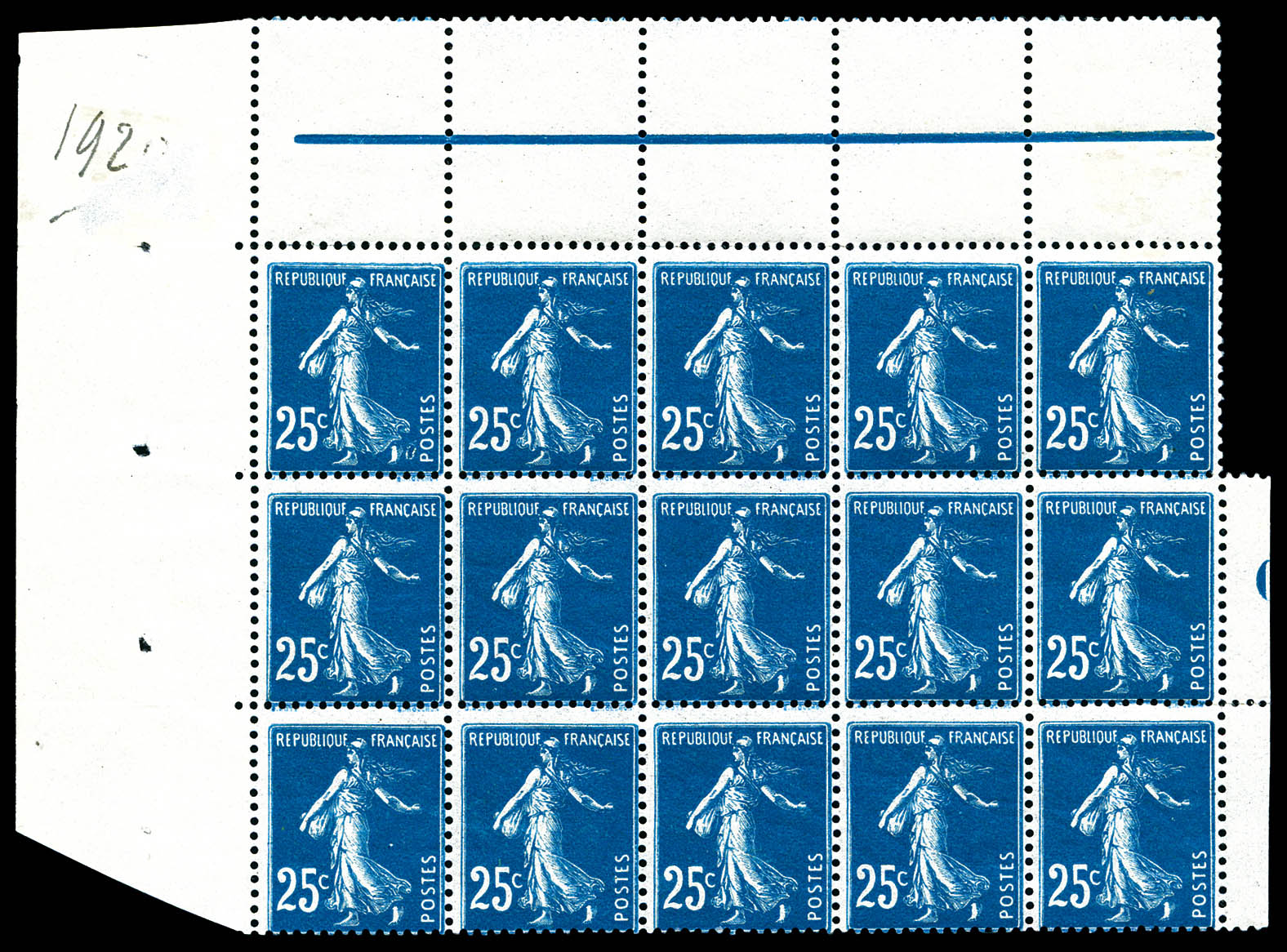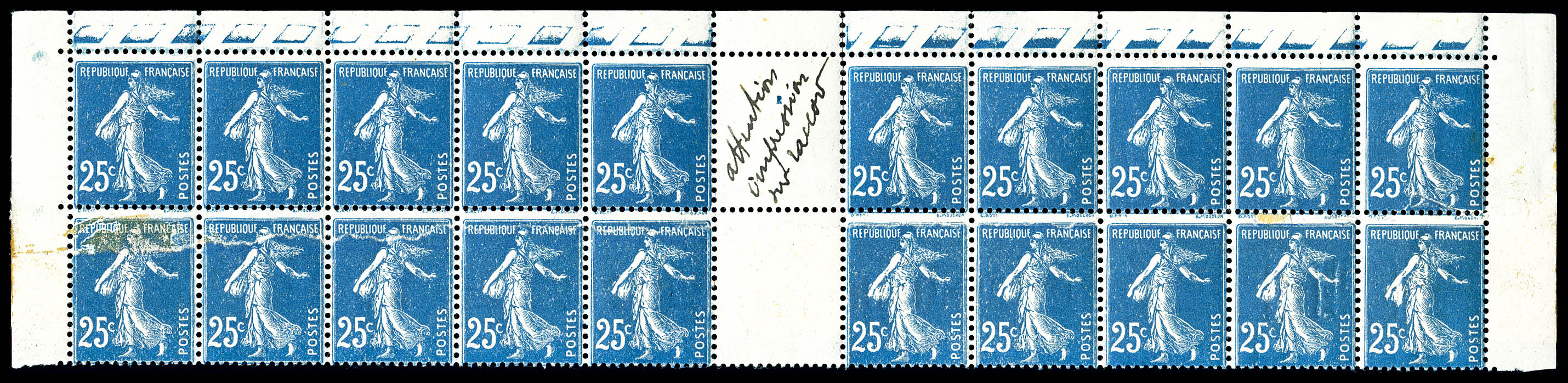 N°140, 25c Semeuse Type IIIB, impression sur raccord en bloc de 10 exemplaires hdf. SUPERBE (certificat) Qualité: ** Cote: 1650
