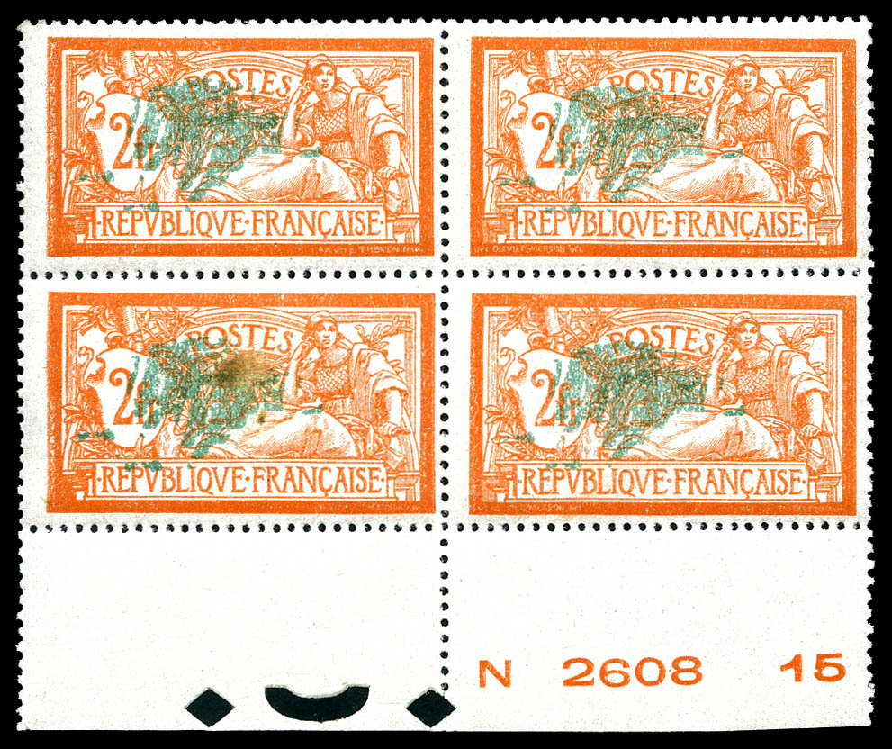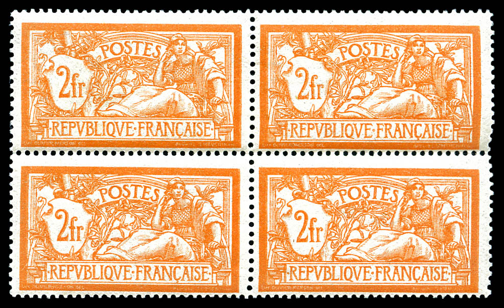 N°145d, 2F Merson sans teinte de fond, bloc de quatre (2ex*). SUP (certificat) Qualité: ** Cote: 1950 euros (Image)
