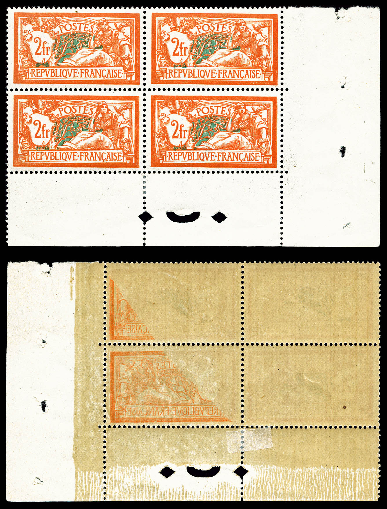 N°145k, Merson 2F: recto-verso sur 2 ex tenant à normaux en bloc de quatre, SUP (certificat) Qualité: ** (Image)