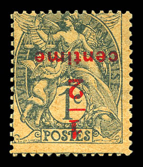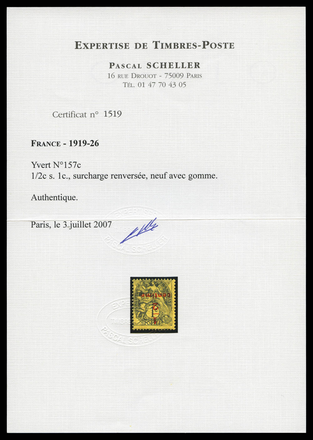 N°157c, 1/2 sur 1c ardoise papier GC: SURCHARGE RENVERSEE, SUPERBE (certificats) Qualité: ** Cote: 2500 euros (Image) (imagea)