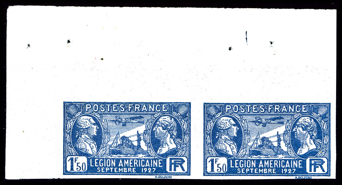 N°244d, Légion américaine: Non dentelé tenant à dentelé en paire verticale haut de feuille, quasi ** (tirage: 10 exemplaires).