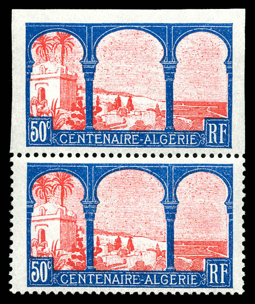 N°263c, Centenaire de l'Algérie francaise: Non dentelé tenant à dentelé. Moins de 10 paires possibles, Fraicheur postale SUPERBE.