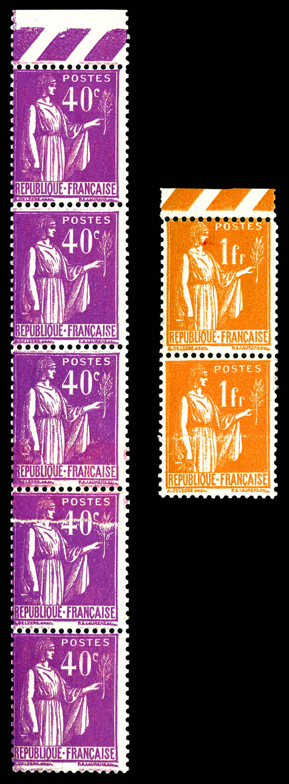 N°281b et 286b*: 40c et 1f Paix, impression sur raccord. TTB Qualité: ** Cote: 320 euros (Image)