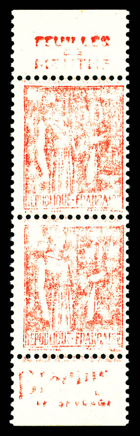 N°356a, (N° Maury), 65c +25c: double impression dont une renversée, bord de feuille latéral, 10 exemplaires connus, R.R.R