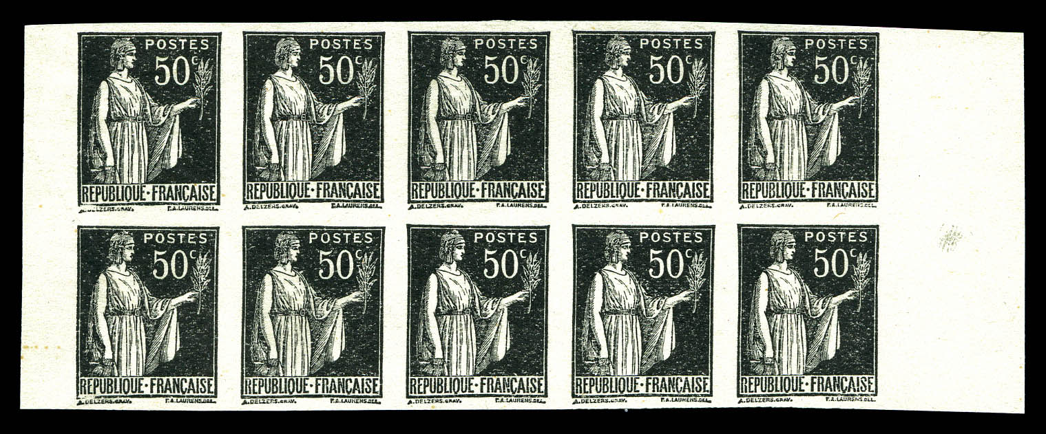 N°283, 50c Paix, essais en noir: un bloc de 10 exemplaires + 1ex bdf. SUP. R. (certificat) Qualité: (*) (Image)