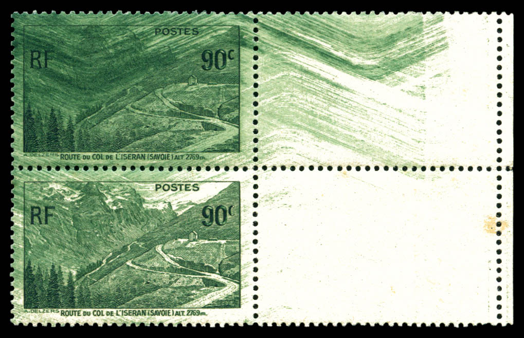 N°358, 90c Col de l'Iseran, superbe variété d'essuyage en paire bdf. TTB (certificat) Qualité: * (Image)