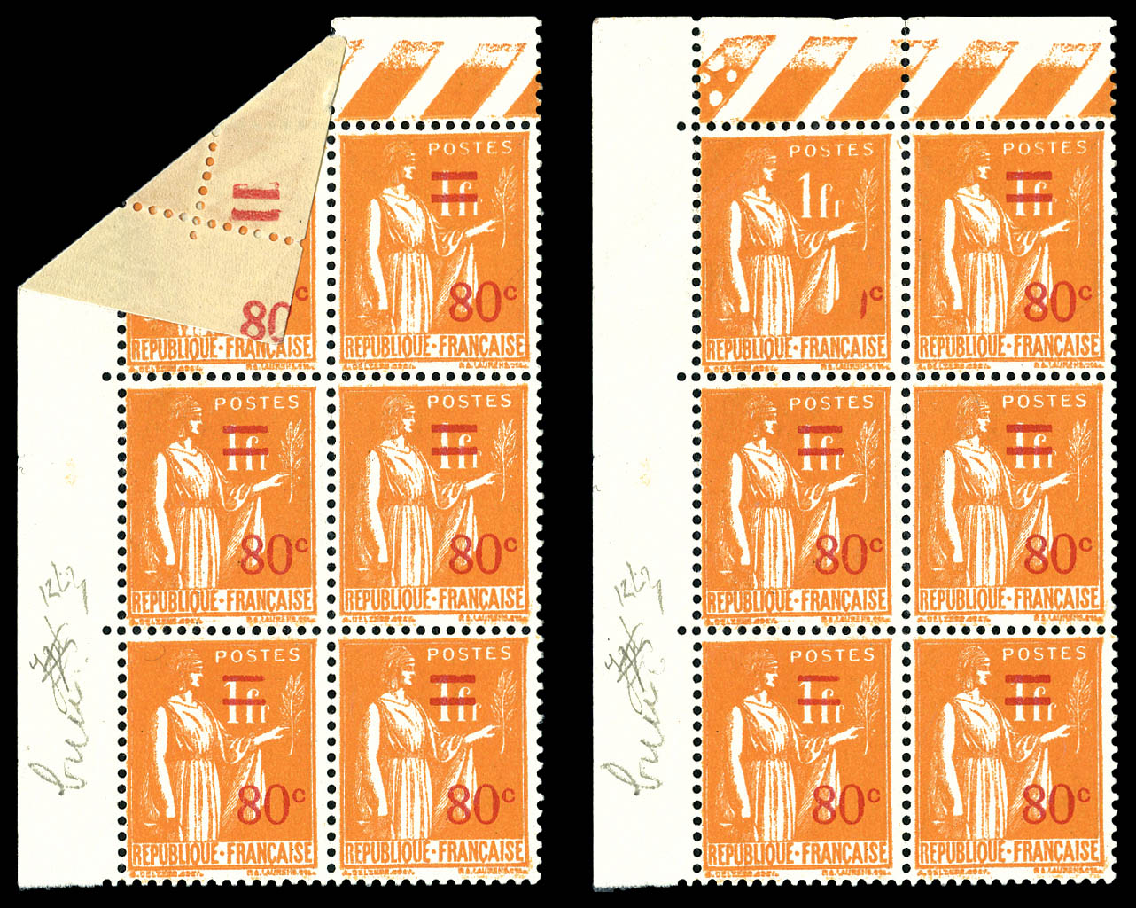 N°359c, 80c s 1f Paix, surchargés tenant à non surchargé par pliage. SUP (signé/certificat) Qualité: ** Cote: 2100 euros (Image)