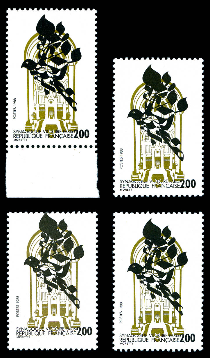 N°2516b/c, 2f Synagogue, double impression + ex Couleur olive clair au lieu de or. TB (certificat) Qualité: ** Cote: 370 euros (Image)