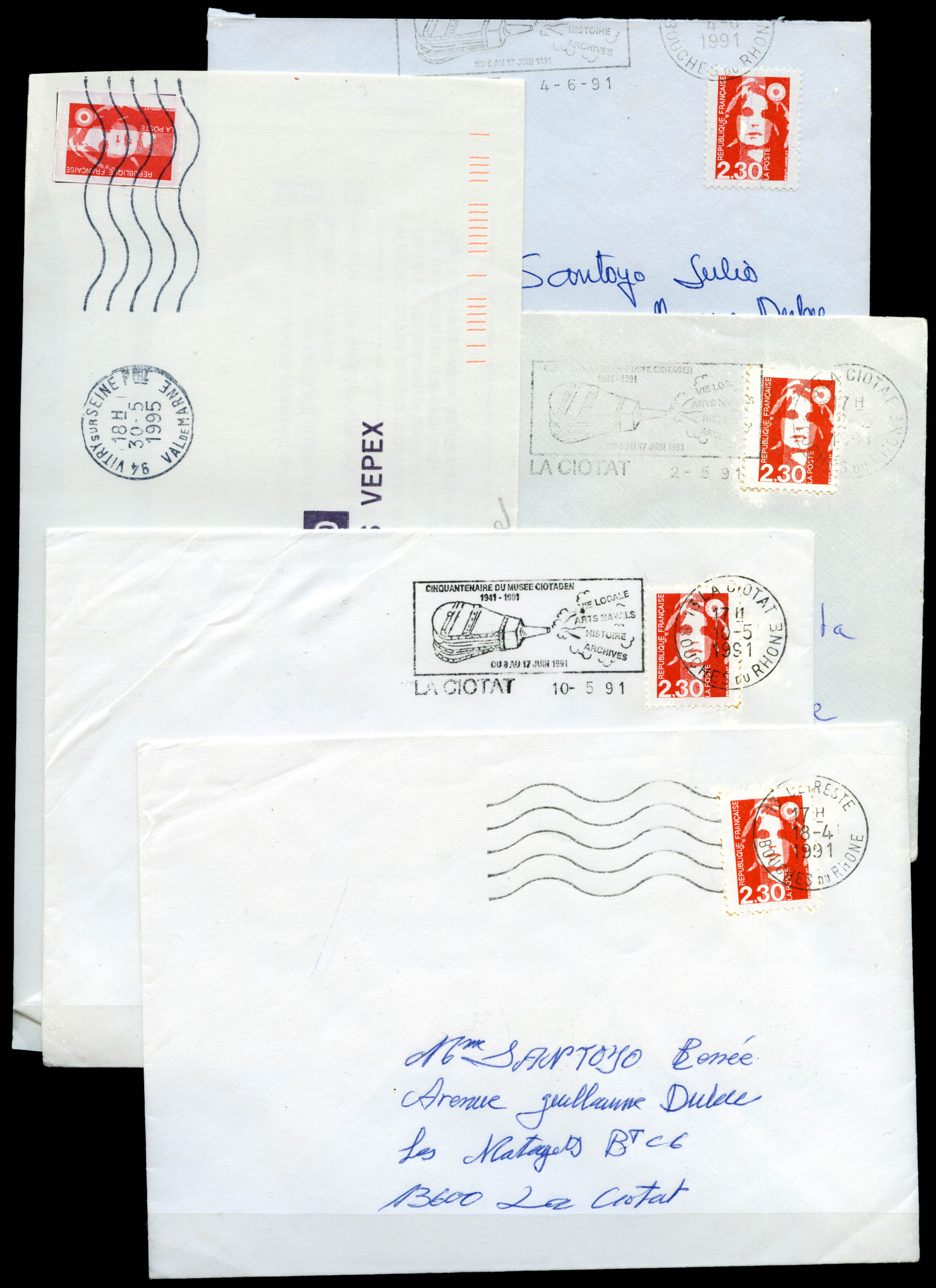 BRIAT N°2614e +2807, ensemble de 5 plis 'Faux de Marseille' + Val de Marne. TTB Qualité: Oblitéré (Image)
