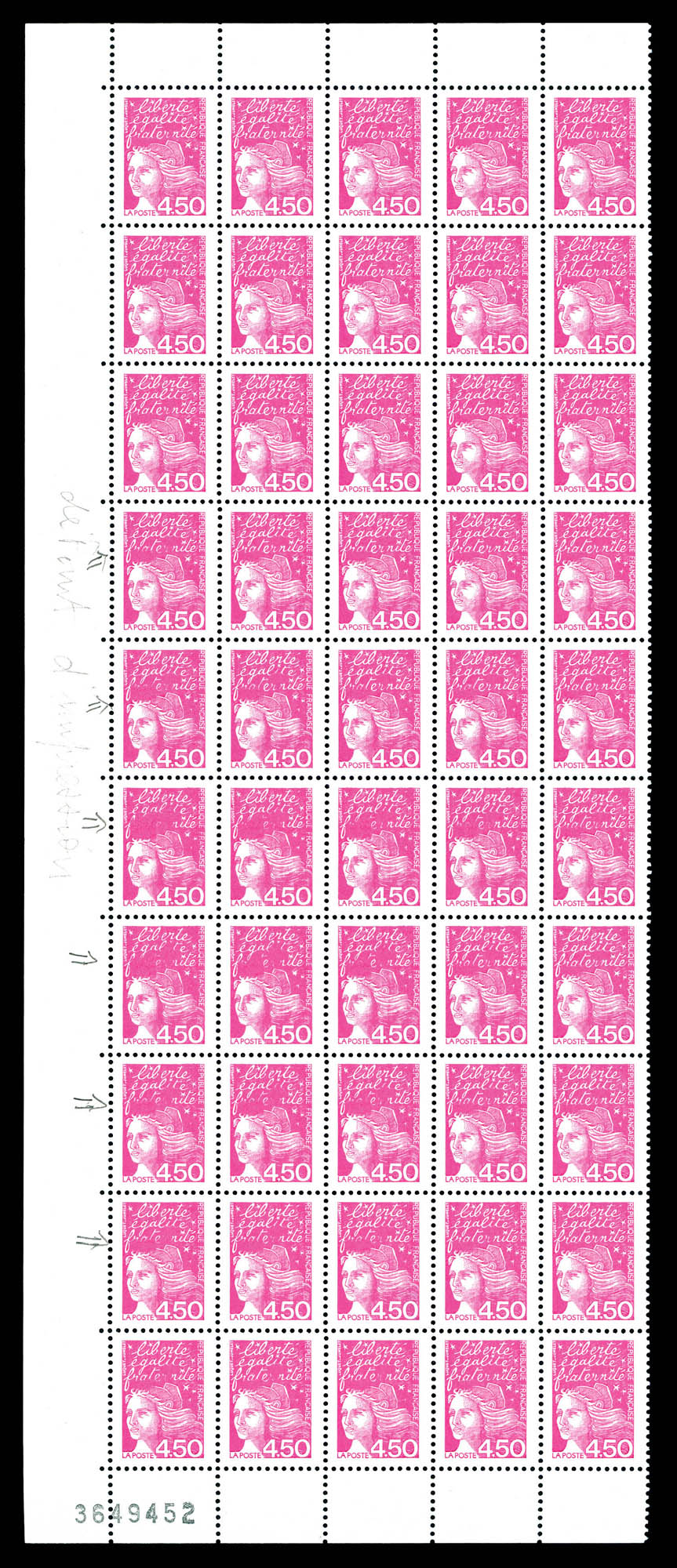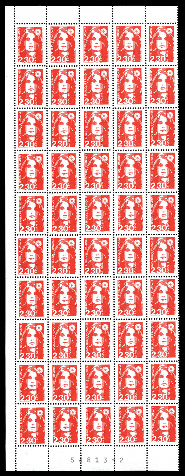 N°2614f, 2f30 Briat, faux de Marseille dentelé 13 en panneau de 50 exemplaires numérotés. TTB (certificat) Qualité: ** Cote: 2500