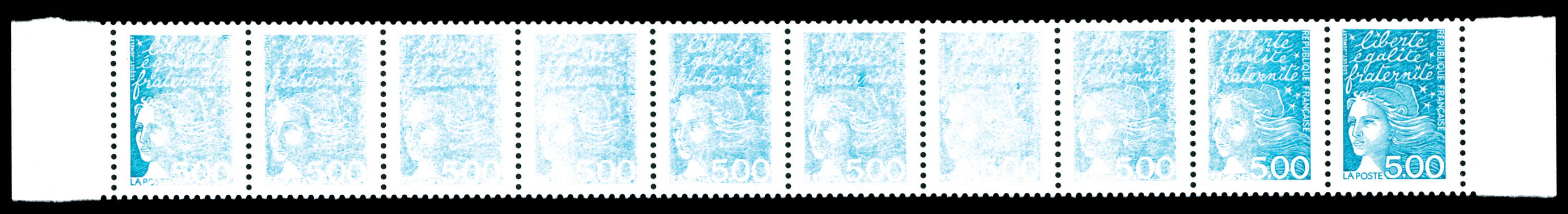 N°3097f, 5F Luquet, impression très défectueuse sur bande de 10 exemplaires bdf. TTB (certificat) Qualité: ** Cote: 1200 euros (Image)