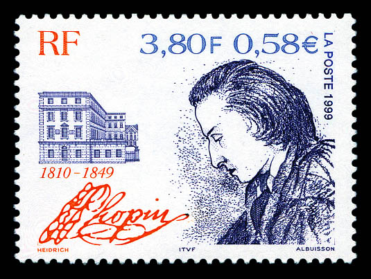N°3287a, Chopin: couleur bleue absente, très jolie pièce, SUP (certificat) Qualité: ** Cote: 500 euros (Image)