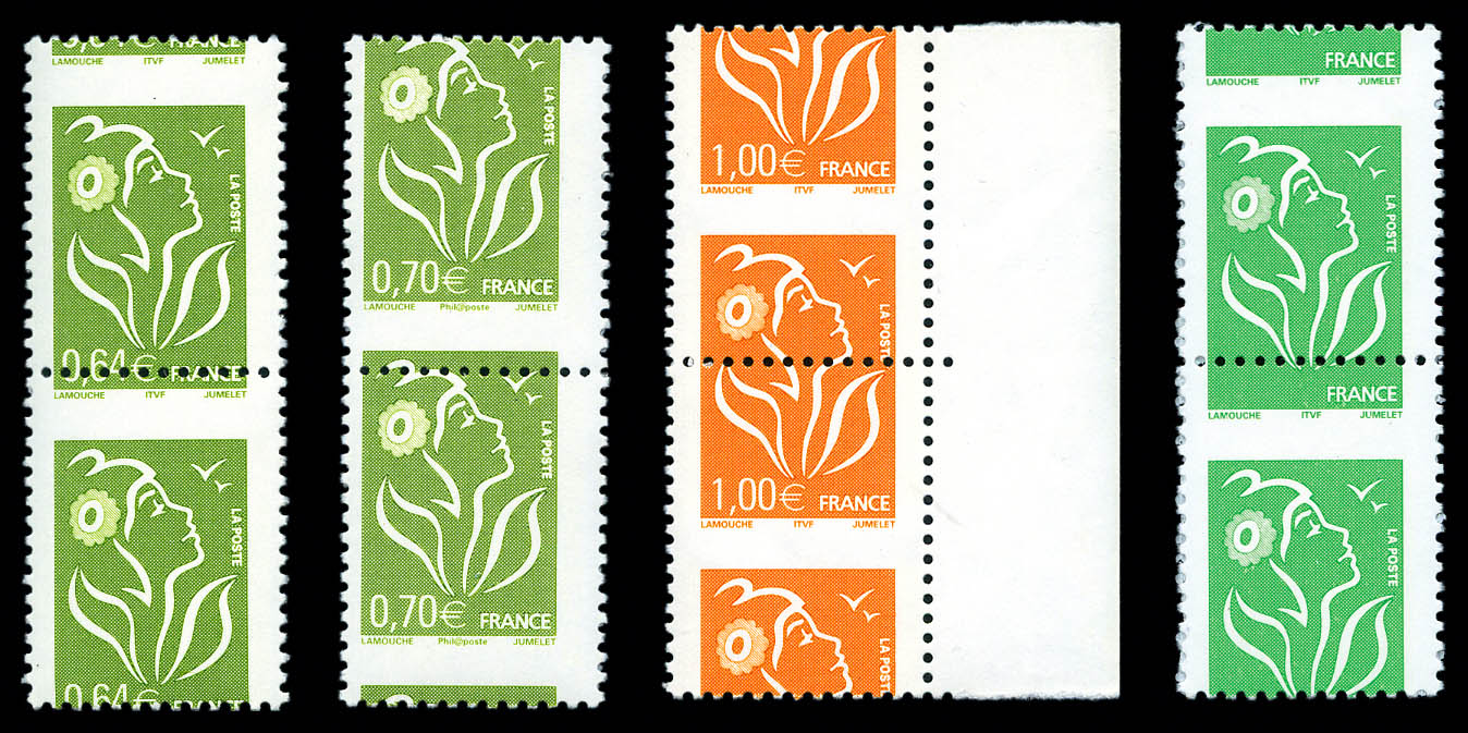 Lamouche, piquages à cheval en paires sur N°3733, 3736, 3739 et 3756. TTB (certificat) Qualité: ** (Image)