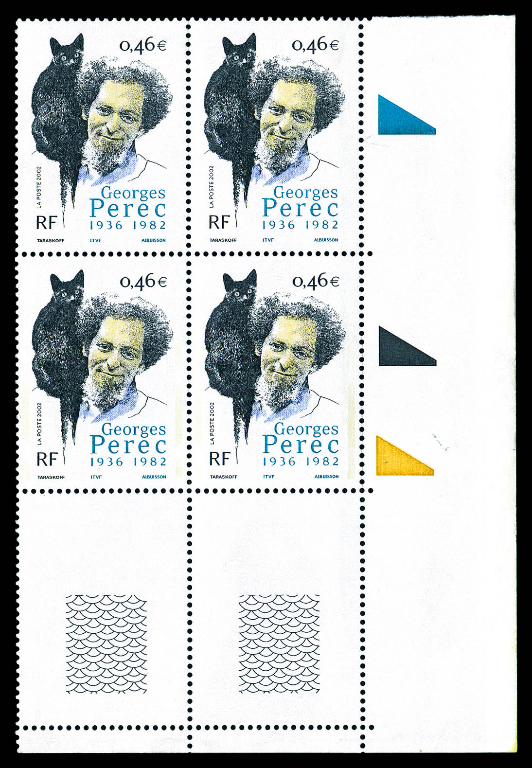 N°3818a, Perec: 2 timbres quasi sans phospho tenant à exemplaires phospo partiels en bloc de quatre cdf. TB Qualité: ** Cote: 1000