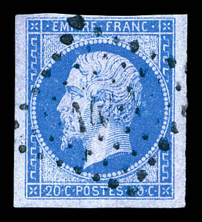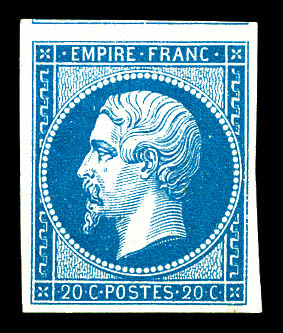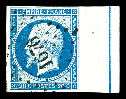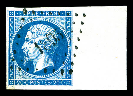 N°14B, 20c bleu type I, bord de feuille latéral. SUP Qualité: Oblitéré (Image)