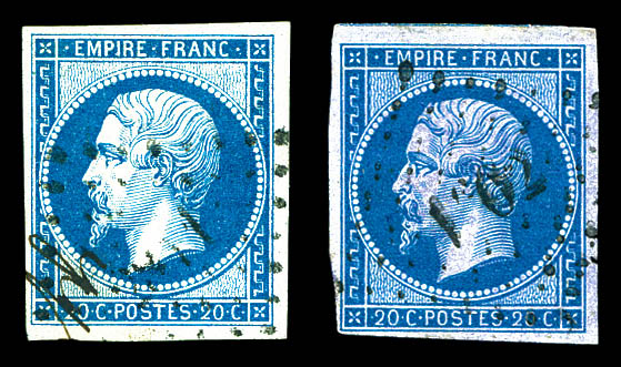N°14Ba/Bb, 20c bleu type II: bleu s vert et bleu s lilas, les 2 exemplaires TB (signés Scheller/certificat) Qualité: Oblitéré Cote: 680 euros (Image)