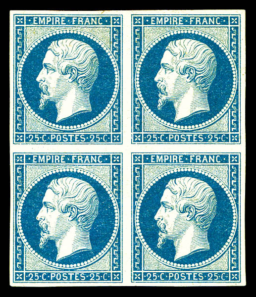 N°15, 25c bleu en bloc de quatre (2ex*), fraîcheur postale. SUPERBE. R.R.R. (signé Brun/Calves/certificats) Qualité: ** (Image) (imagea)