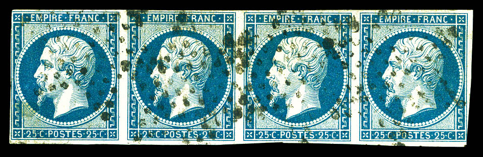 N°15, 25c Empire, bande de 4 obl étoile (ex de gauche pd). TB. R. (signé Calves/certificat) Qualité: Oblitéré Cote: 2750 euros (Image)