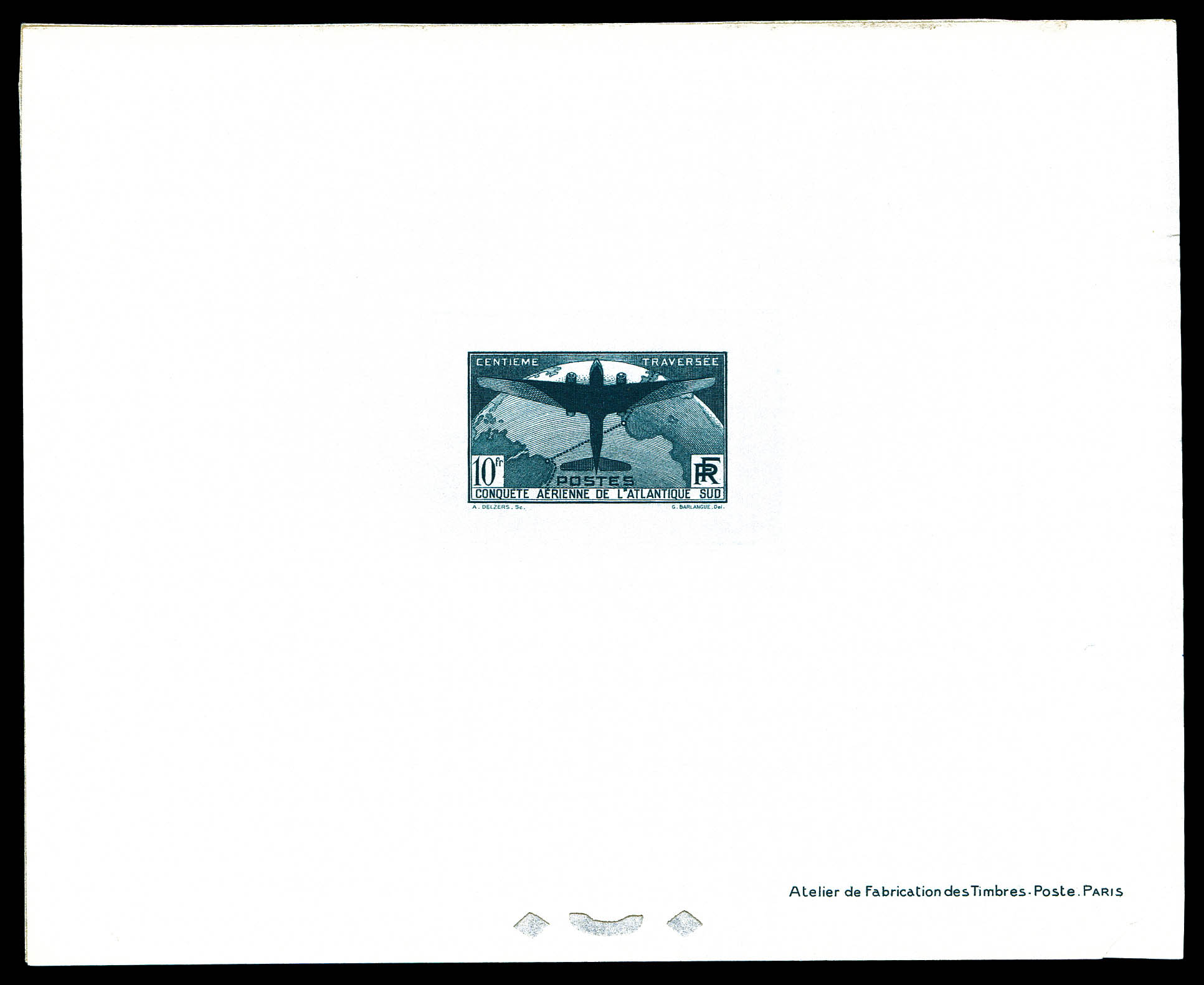 N°321, Traversée de l'Atlantique Sud, 10F vert-foncé en épreuve de luxe, très jolie pièce (certificat) Qualité: (*) Cote: 1400