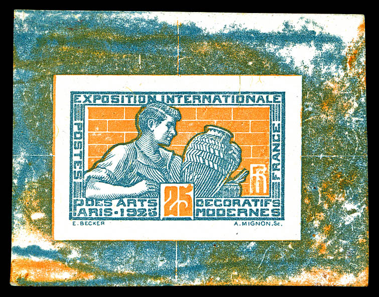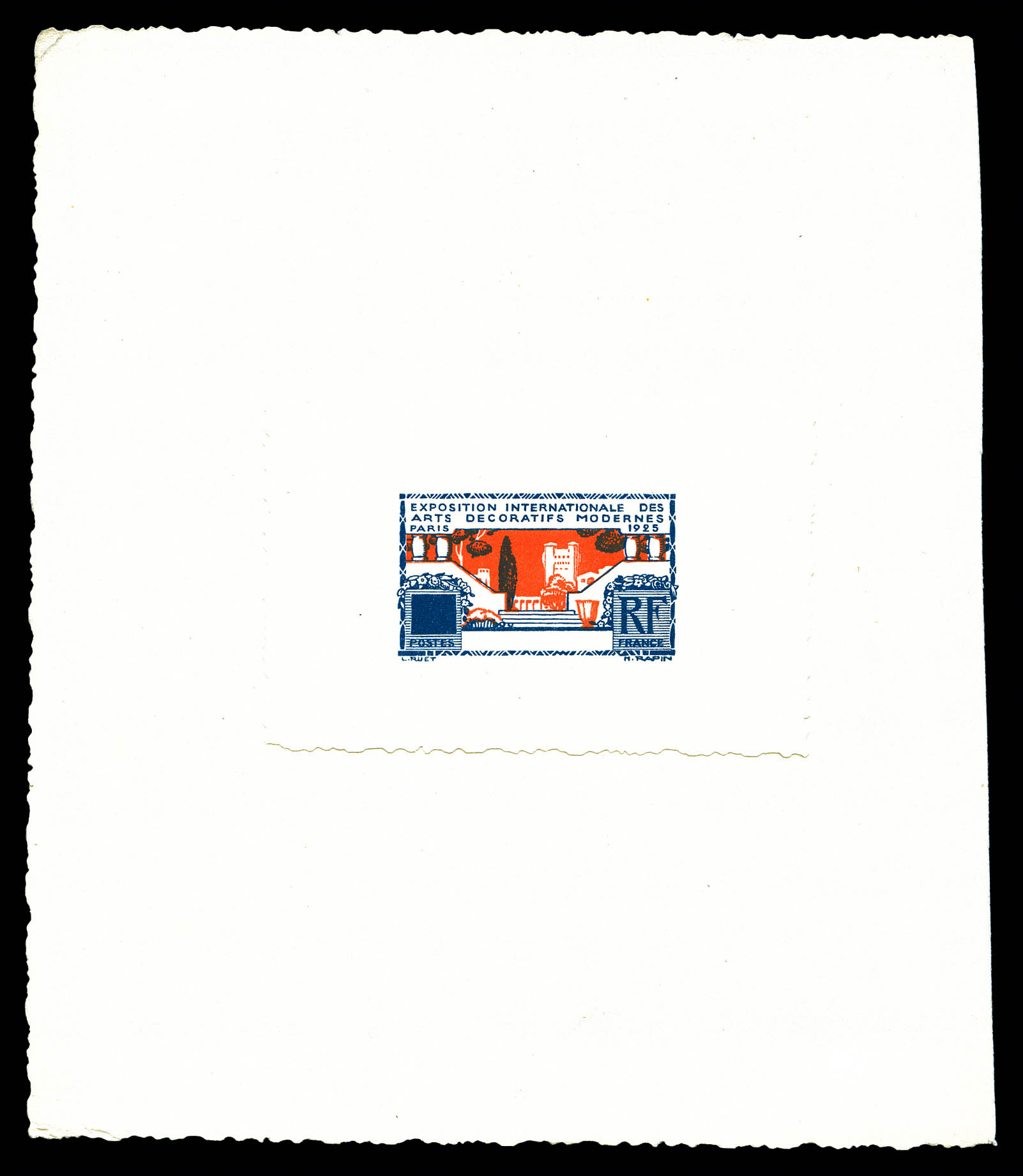 N°213, 1924, Expo des arts décoratifs: épreuve de couleur 'L'Architecture' sans faciale en orange et bleu. SUPERBE. R.R. (certificat)
