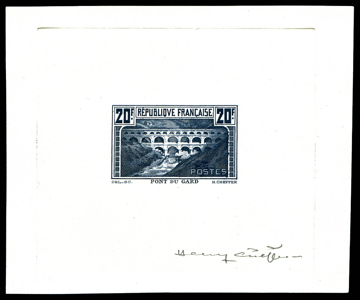 N°262, Pont du Gard: Epreuve de couleur en noir petit format signée du graveur (Henry Cheffer), R.R.R. et SUPERBE (certificat)