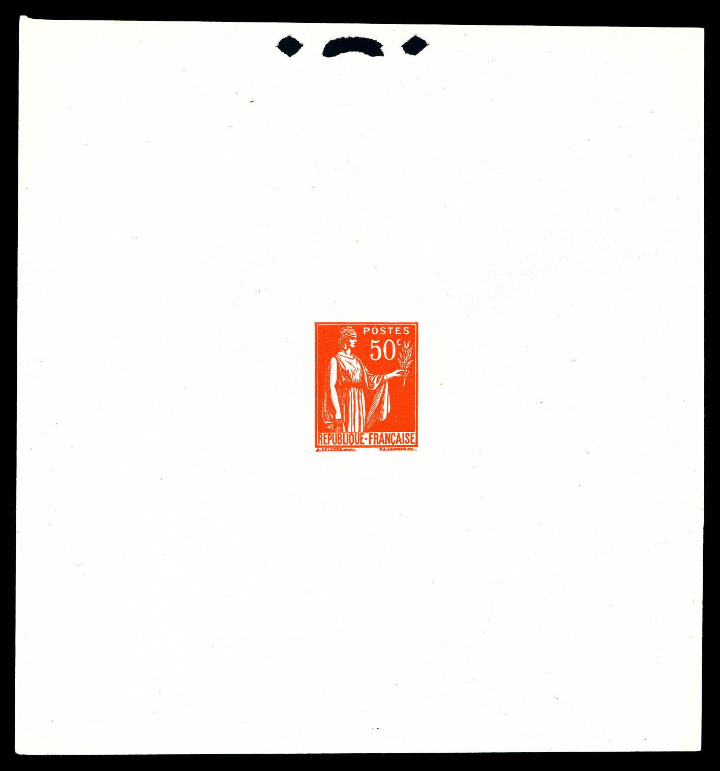 N°283, 50c Paix, épreuve de couleur en rouge-orange avec preforation de contrôle. TTB (certificat) Qualité: (*) (Image)