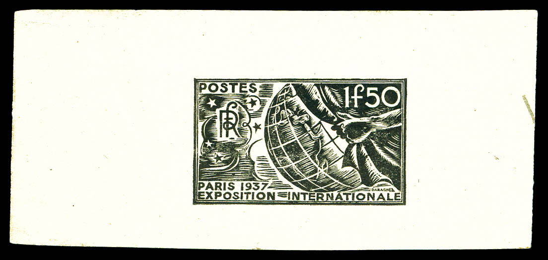 N°327, 1f 50 Expo de Paris 1937: Epreuve non émise en gris-noir sur petit feuillet. TTB (signé Scheller/certificat) Qualité: (*) (Image)