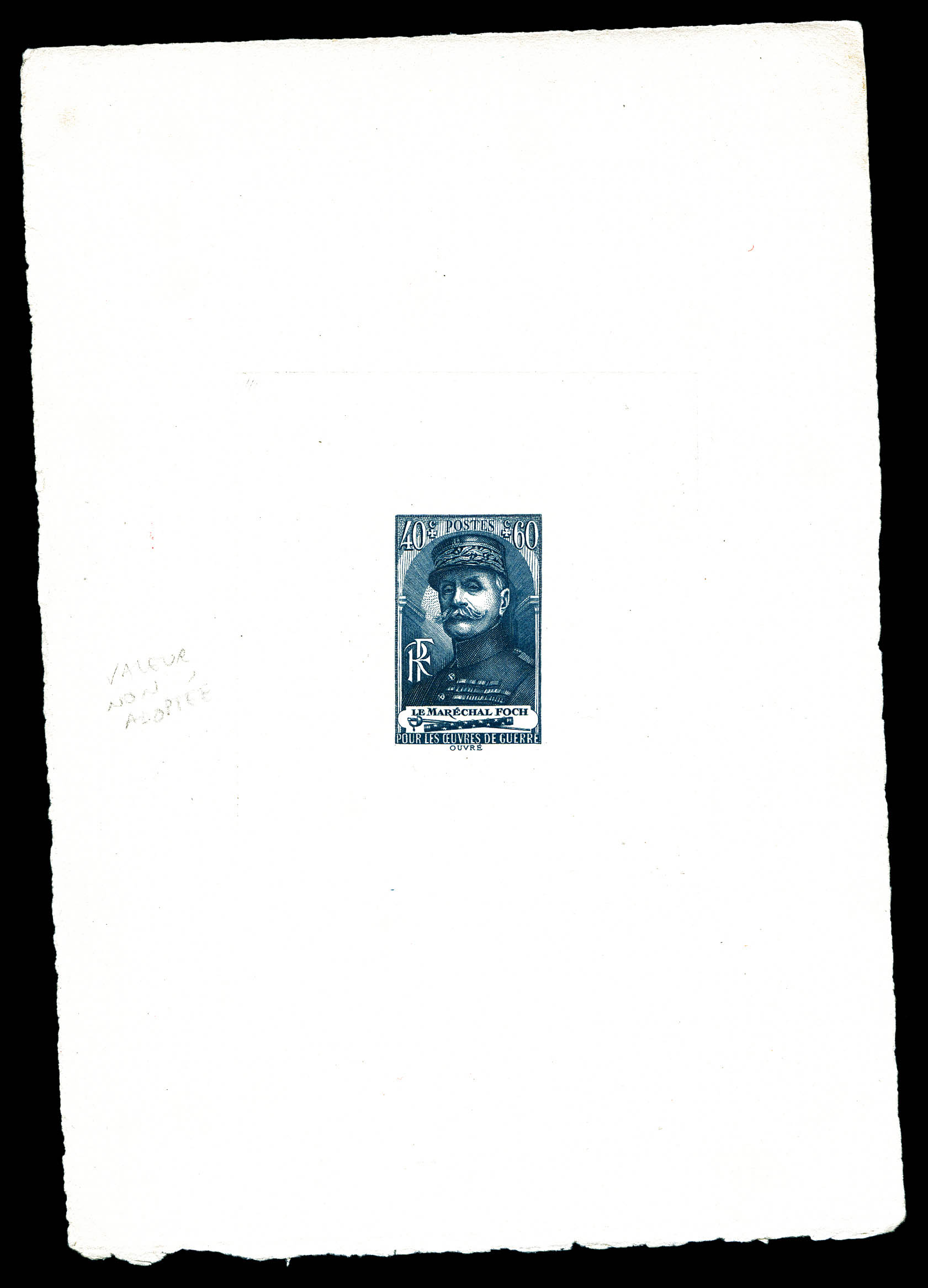 N°455, NON EMIS, Foch 40 +60c (au lieu de 1f+50c), épreuve en bleu-gris, RARE et SUP (certificat) Qualité: (*) (Image)