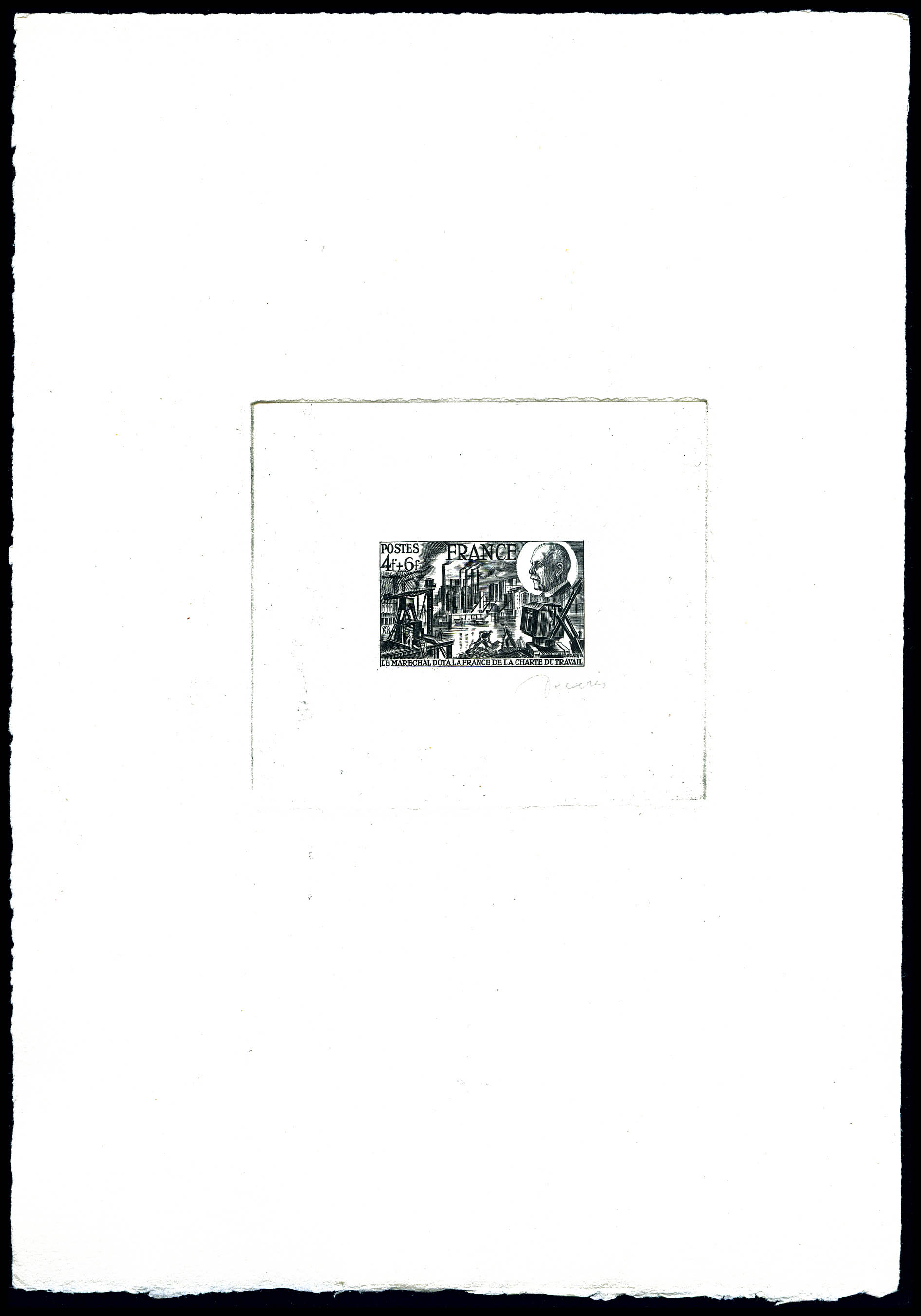 N°608, Pétain et Industrie, épreuve d'artiste en noir signée. TTB (certificat) Qualité: (*) (Image)