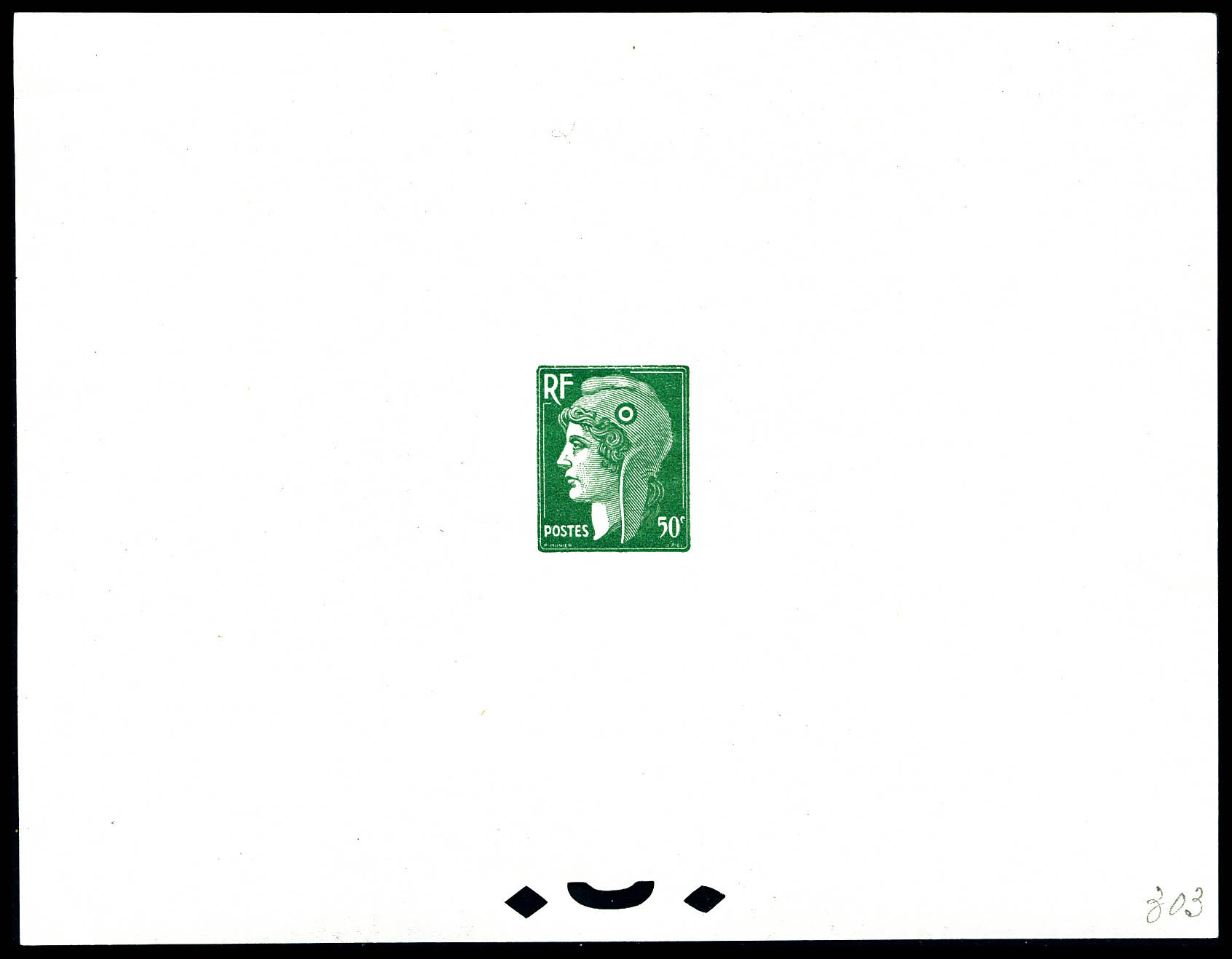 Non émis (1945) Marrianne de Piel, épreuve à 50c en vert sur papier gommé. TB. R. (certificat) Qualité: * (Image)
