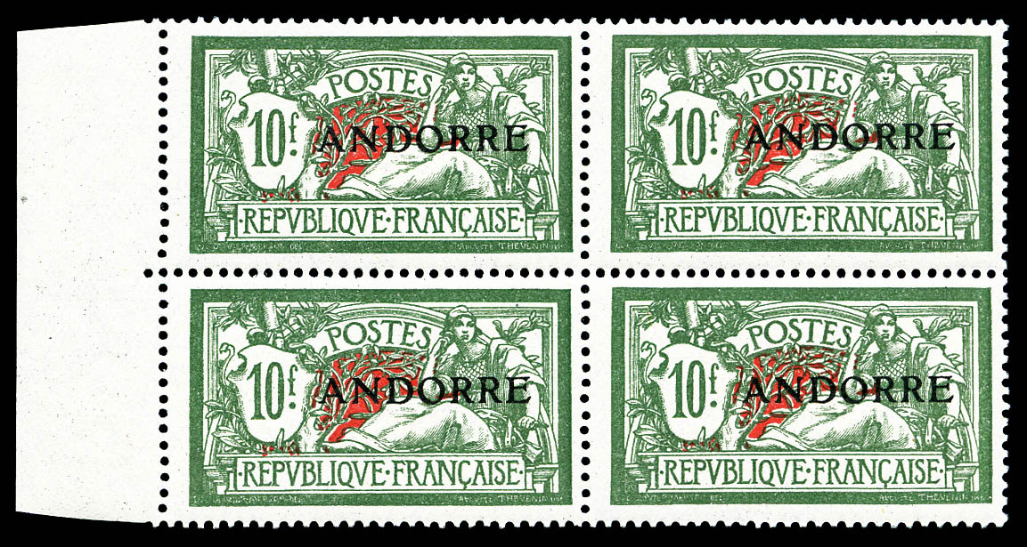 2598 nh imageN°22, 10F Merson en bloc de quatre bdf, frais. SUP (certificat) Qualité: ** Cote: 2560 euros (Image)