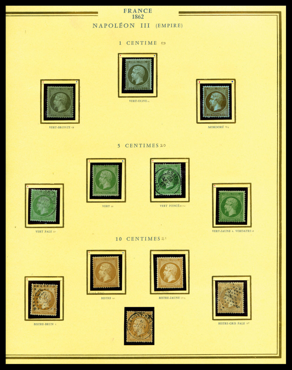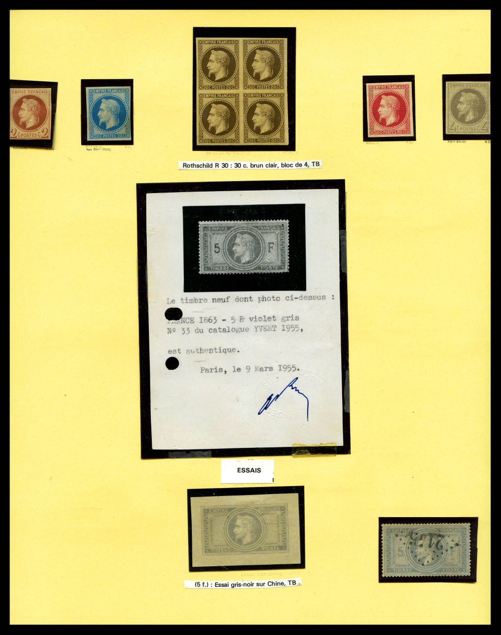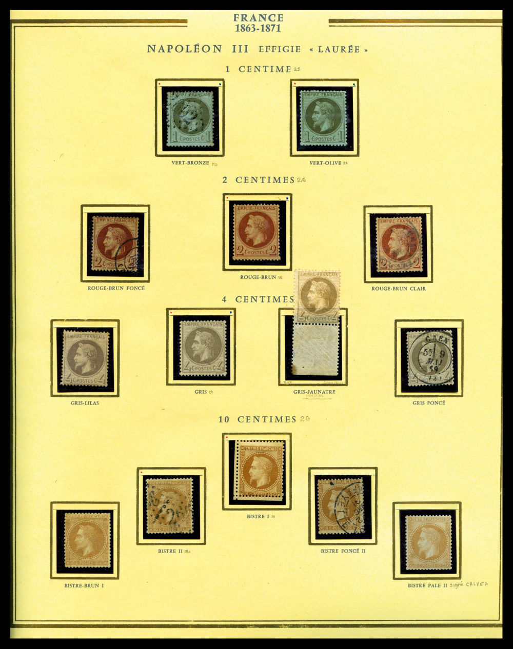2589 N& image1862-1869, Empire dentelé et Empire Lauré: Collection de timbres neufs et oblitérés présentée sur page 'Cérès Présidence', de nombreuses bonnes valeurs avec nuances, impressions de Rothschild, épreuve, dont N°33 par multiple (4 exemplaires dont un neuf signé Brun), forte cote !! Qualité: N&Oblitéré (Image) (imagea) (imageb) (imagec) (image5) (image6) (All Images)