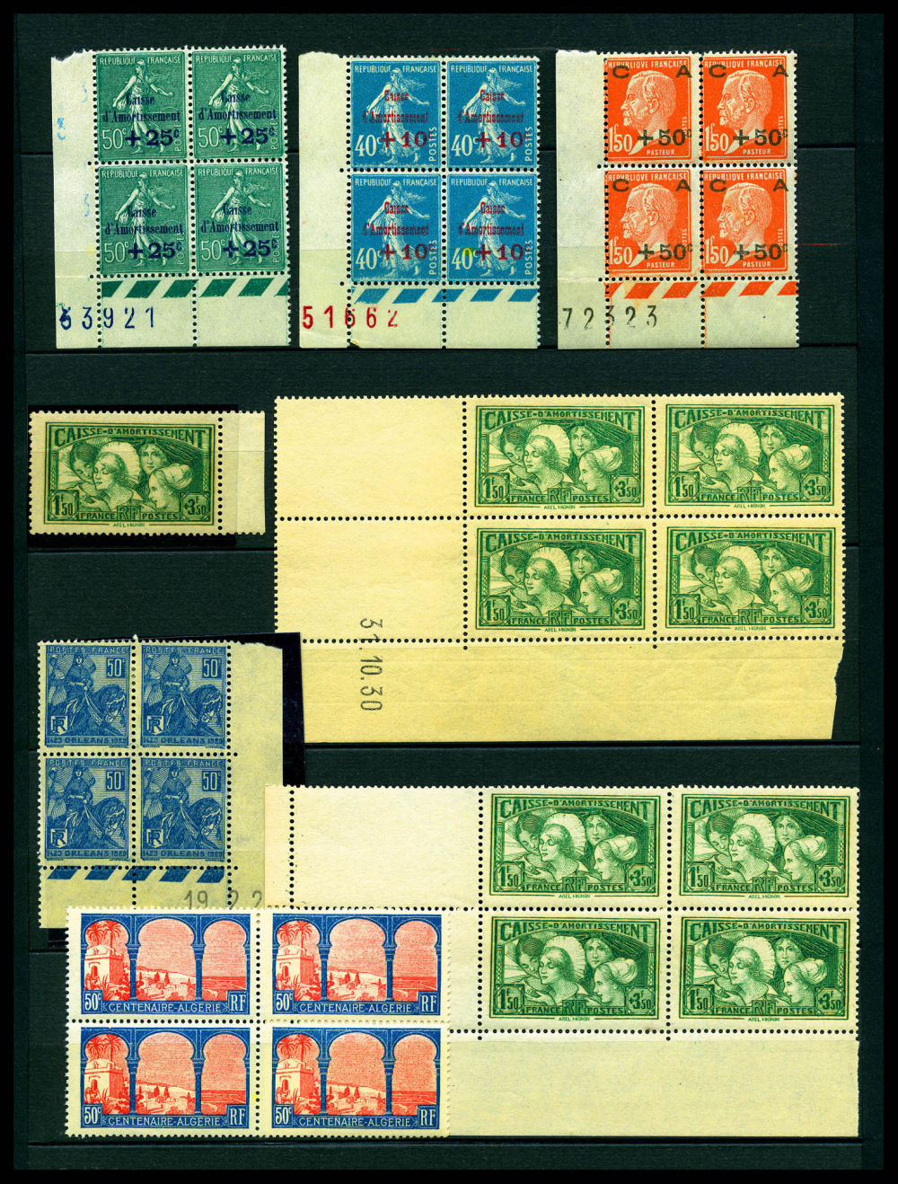 2591 nh image1900-1960, Poste, PA, Préo, Taxe: stock présenté en 4 ablums composé en grande partie de timbres d'Avant Guerre dont Orphelins, caisses d'amortissement, avec nombreux blocs, coins datés, millésimes, nuances en majorité neufs**, à noter que la cote ne tient pas compte de la plus value de ces derniers (cote des timbres uniquement). IDEAL REVENDEUR OU COLLECTIONNEURS !!! Qualité: ** Cote: 115300 euros (Image) (imagea) (imageb) (imagec) (image5) (image6) (image7) (image8) (image9) (image10) (image41) (image42) (image43) (image44) (image45) (All Images)