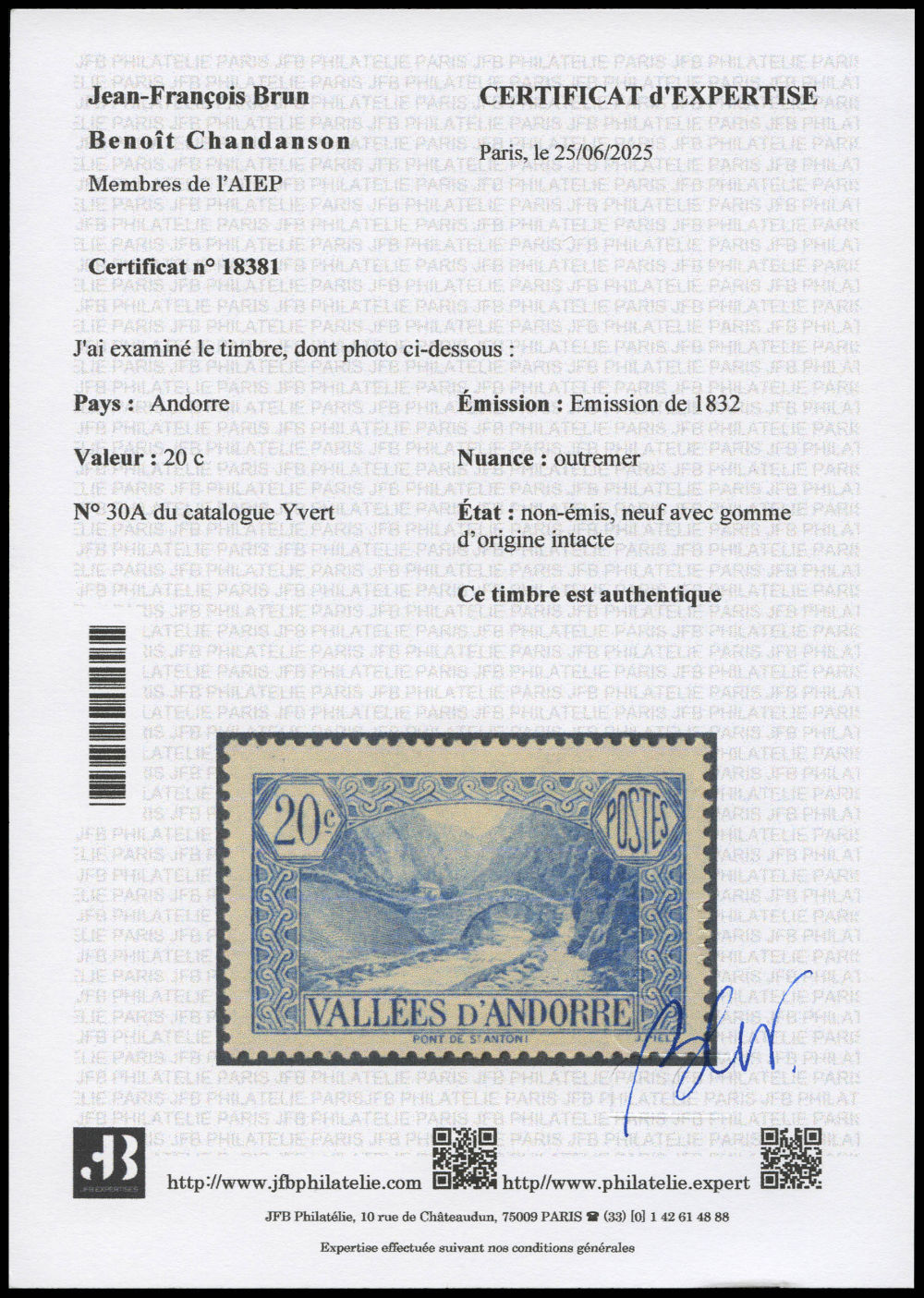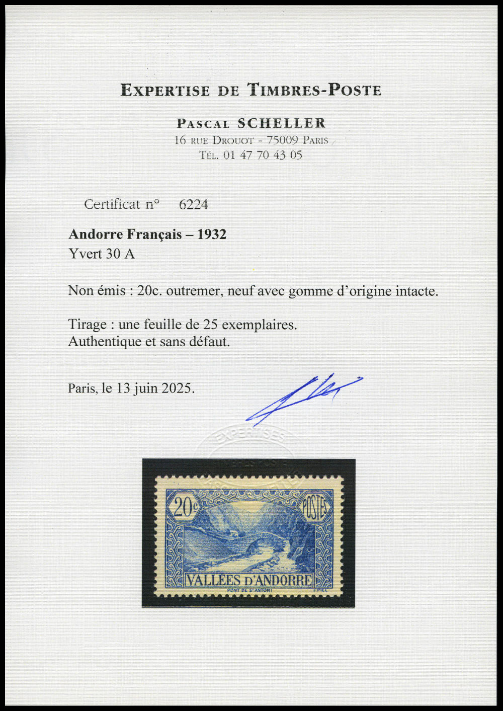 2596 og imageN°1/23, Première série surchargée Andorre. TB (certificat) Qualité: * Cote: 1375 euros (Image)