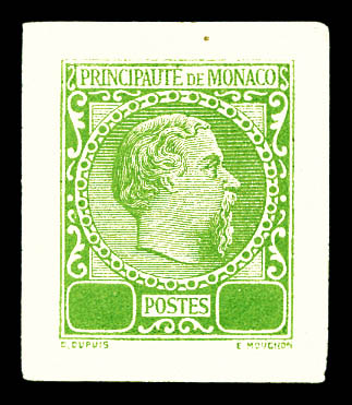 Charles III: épreuve sur feuillet en vert-jaune, sans valeur. SUP. R. (signé Scheller/certificat) Qualité: (*) (Image)