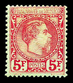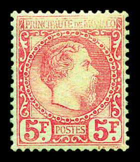 N°10, Charles III, 5F carmin sur vert, très bon centrage et grande fraîcheur. SUP. R.R. (signé Brun/certificat) Qualité: * Cote: